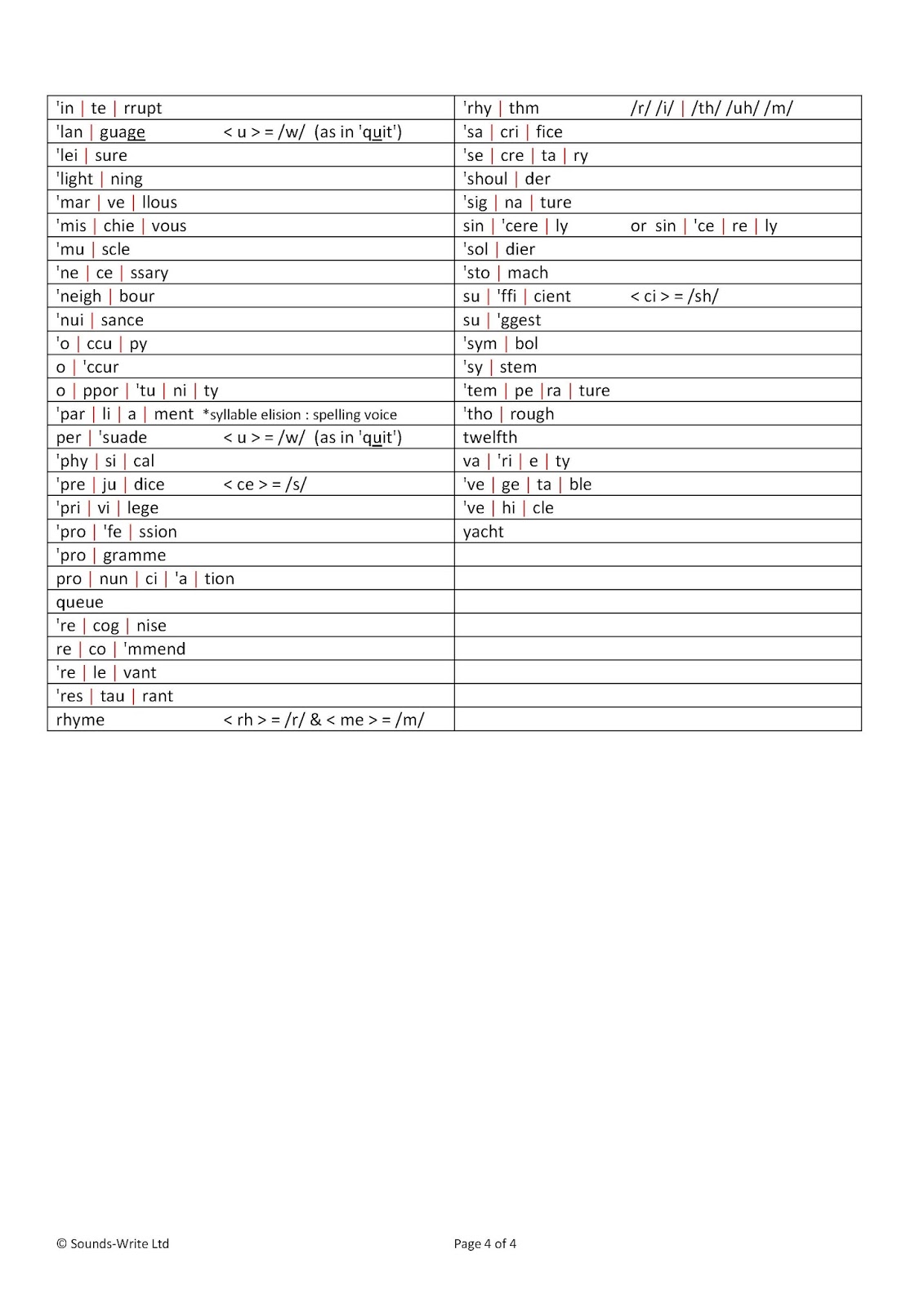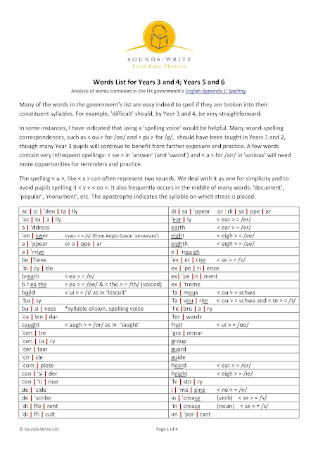 These lists will be posted on the Sounds-Write website as free downloadable PDFs.
